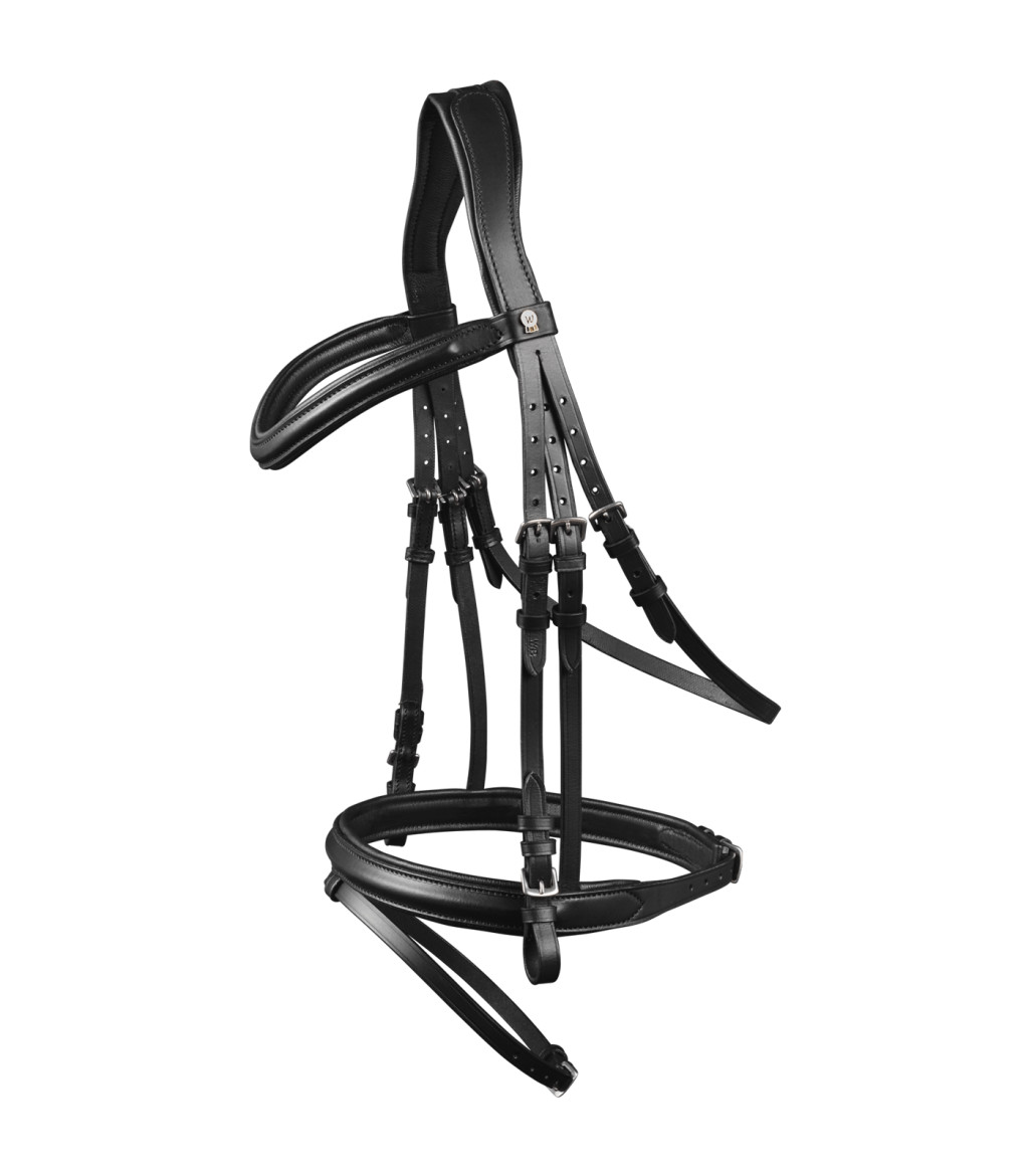 A Waldhausen X-Line London kantár minőségi bőrből készült, angol kombinált orrszíjjal, amely stabil, kiegyensúlyozott irányítást biztosít. Az anatómiailag formázott homlokszíj és a puha párnázás hozzájárul a ló kényelméhez, miközben a klasszikus kialakítás visszafogott, elegáns megjelenést ad a felszerelésnek. A kantár szárral együtt kapható.