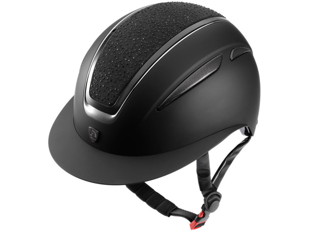A Tattini Cassiopea kobak egy elegáns és modern lovaglókobak, amely a stílust és a funkcionalitást ötvözi. A csillogó kövekkel díszített külső igazán látványos megjelenést biztosít, így ideális választás azoknak, akik nemcsak biztonságos, hanem esztétikus kobakot is keresnek. A kobak széles ellenzője nemcsak stílusos, hanem praktikus is. A kétoldali szellőzőrendszer segíti a levegő áramlását, így kényelmes viseletet biztosít lovaglás közben.