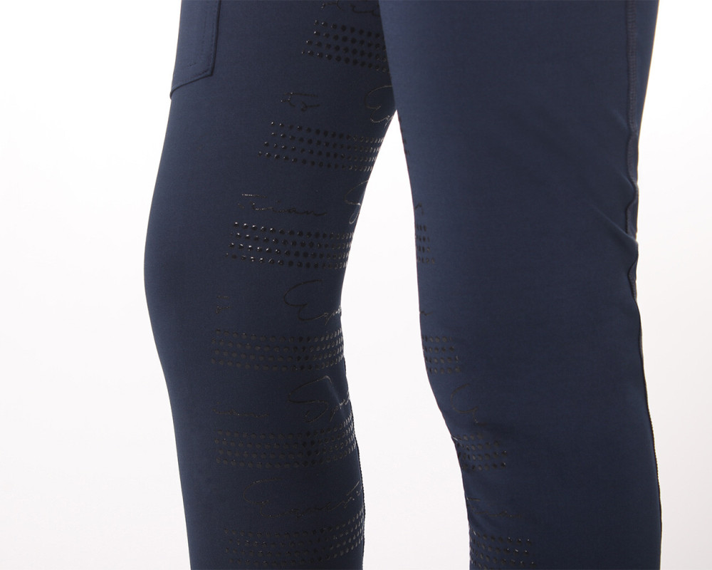 Leggings fazonú, könnyű lovaglónadrág telefonzsebbel és csúszásmentes, szilikonpöttyös ülőfelülettel.