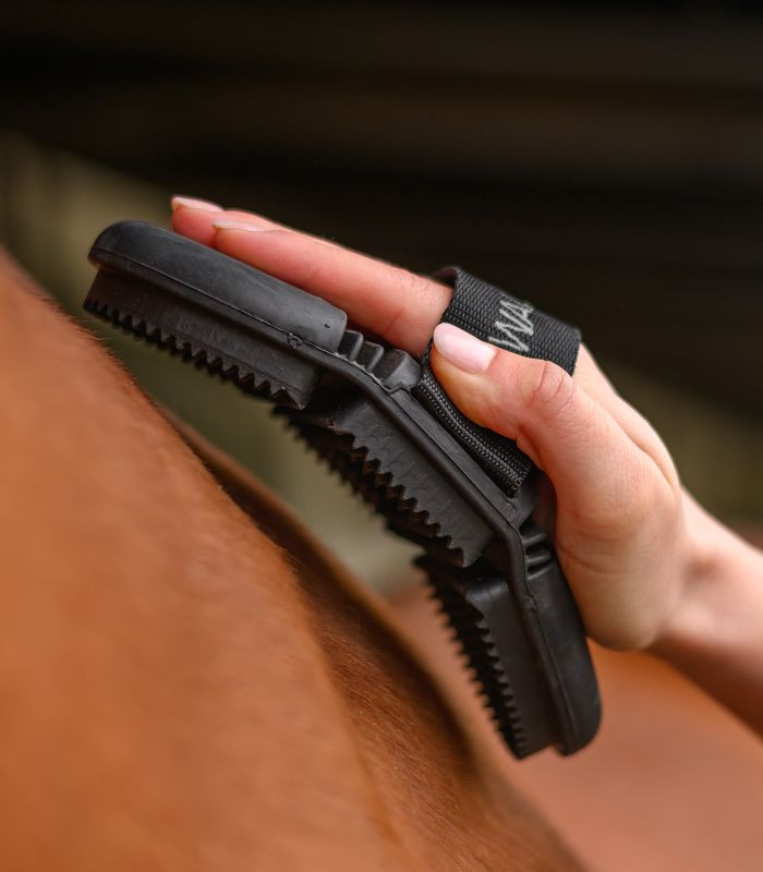 A Waldhausen Flex gumi vakaró rendkívül könnyen eltávolítja a port, durva szennyeződéseket és elhullott szőrt, így gyors és alapos ápolást biztosít minden nap.