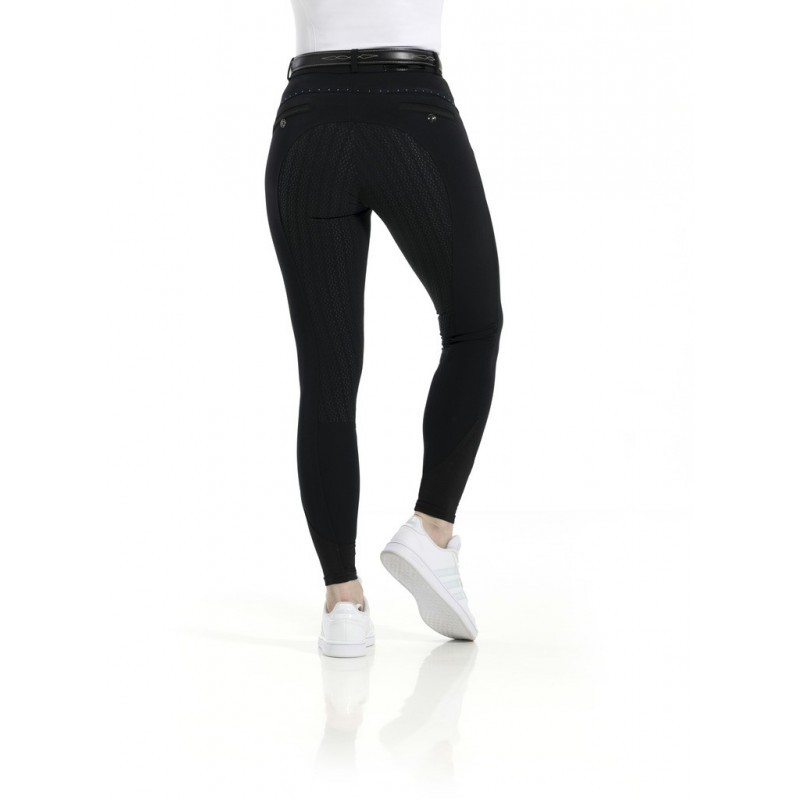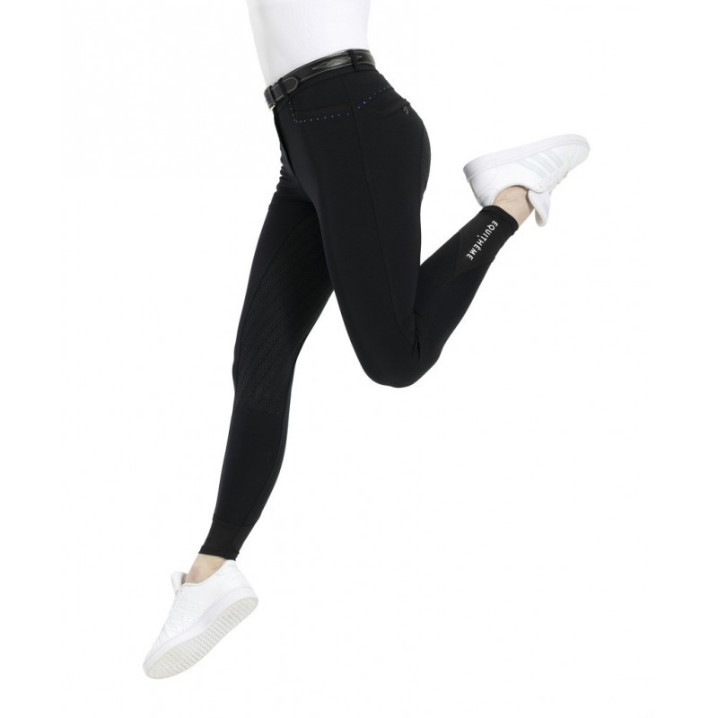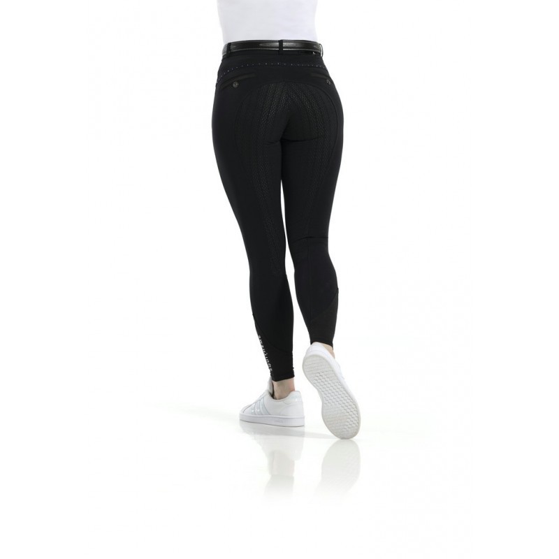 Chic, refined, rhinestone-clad breeches for sporty and trendy riders. A strong stretch fabric guaranteed to provide support. Non-slip seat with silicone print for maximum grip. Lower leg in elastane. Classic cut.