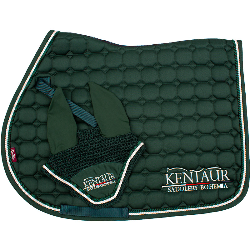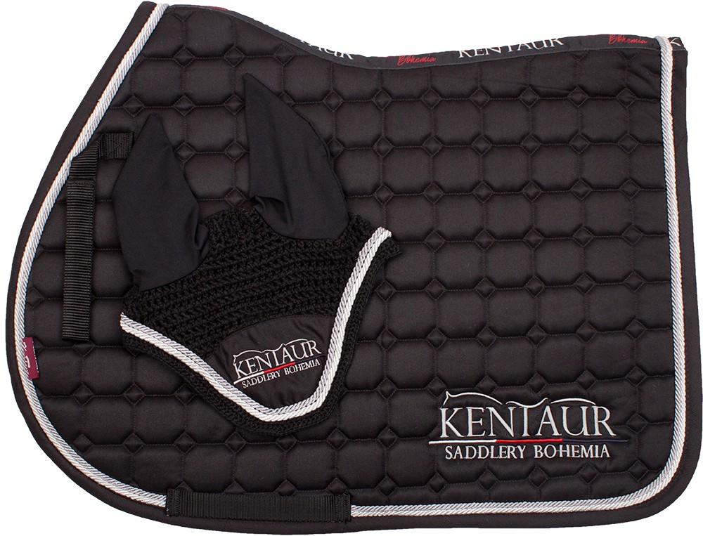 Jumping saddle pad + earnet, with KenTaur logo. Decorated with double twisted cord. The bottom material is made of hi-tech material, which perfectly absorbs and drains sweat from the horse.