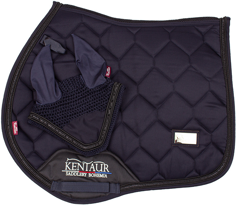 Elegant saddle pad with ear net, featuring a modern quilted design and a breathable MESH spine channel that ensures optimal airflow along the horse’s back.The new, decorative quilting is adorned with a double piping and a shimmering central strip, completed by a stylish metal Kentaur logo.
