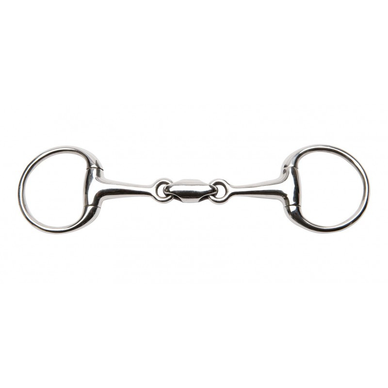 In stainless steel with an anatomical double joint.Can be used in addition to a bridle bit or alone for better stability on the hand.