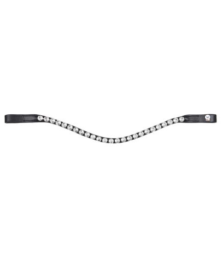 A Waldhausen X-Line Boost homlokszíj letisztult, mégis karakteres megjelenést ad a kantárnak a fekete bőrszíj és a kontrasztos kövek harmonikus összhatásával. Ívelt kialakítása természetesen illeszkedik a ló homlokára, miközben esztétikus hangsúlyt ad a felszerelésnek. Praktikus és látványos kiegészítő a mindennapi lovagláshoz.